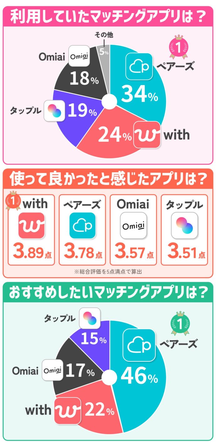 ペアーズ|30代の利用率・おすすめしたいマッチングアプリNo.1