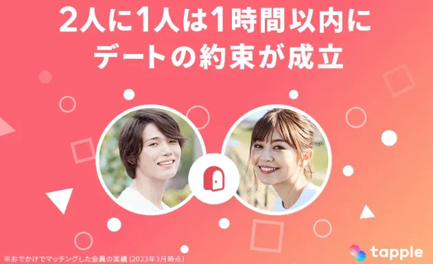 タップルの「おでかけ」機能なら、24時間以内にデート相手を見つけられます。