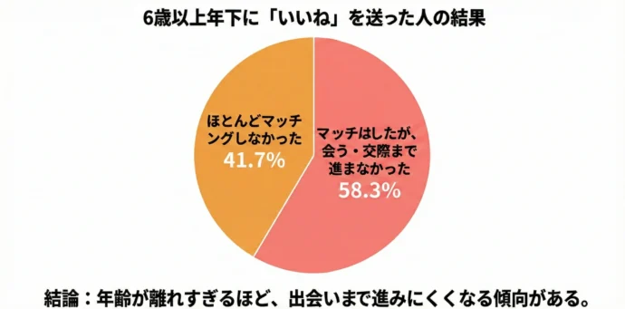 ほとんどマッチングしなかった人の中には、かなり年下の相手にいいねを送っているケースが見られました。