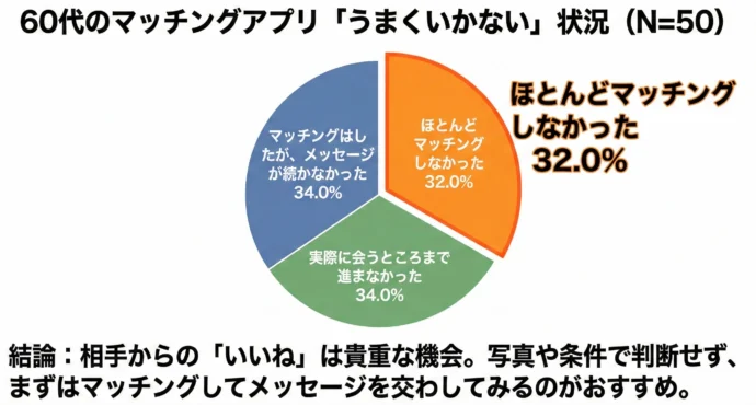 | 調査対象 | マッチングアプリを利用したものの「うまくいかなかった経験がある」60代男女 |