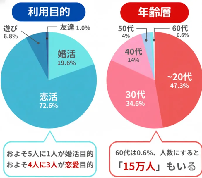 本記事では、編集部が実施した独自アンケート結果をもとに、 60代向けマッチングアプリの利用実態を分析しています。