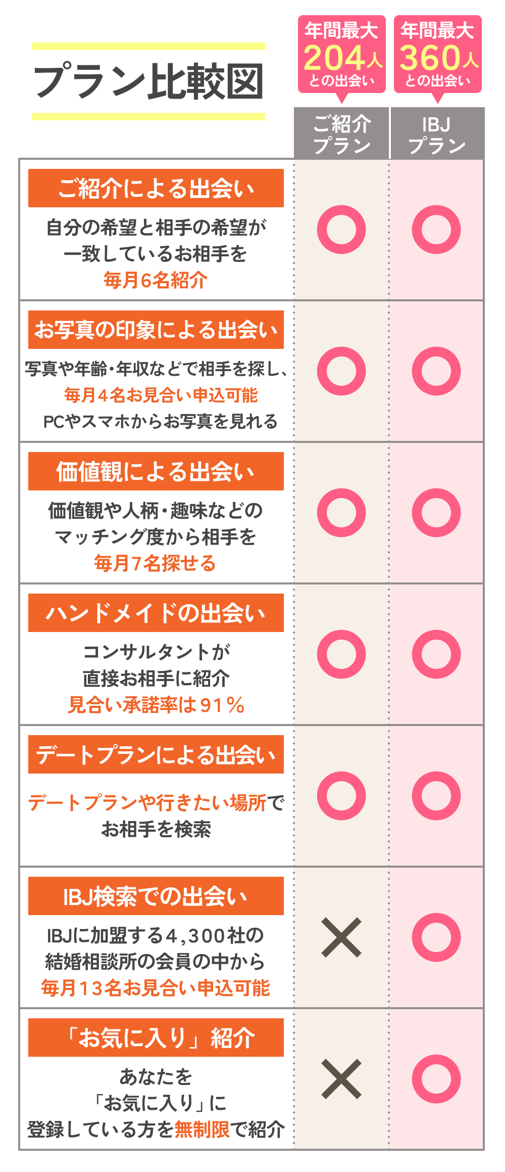- 『IBJプラン』と『ご紹介プラン』、それぞれに適している人の特徴をまとめました。