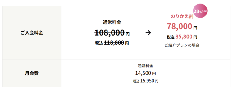 他社から乗り換える場合は入会金が30,000円安くなります。(IBJ加盟店からののりかえは対象外)