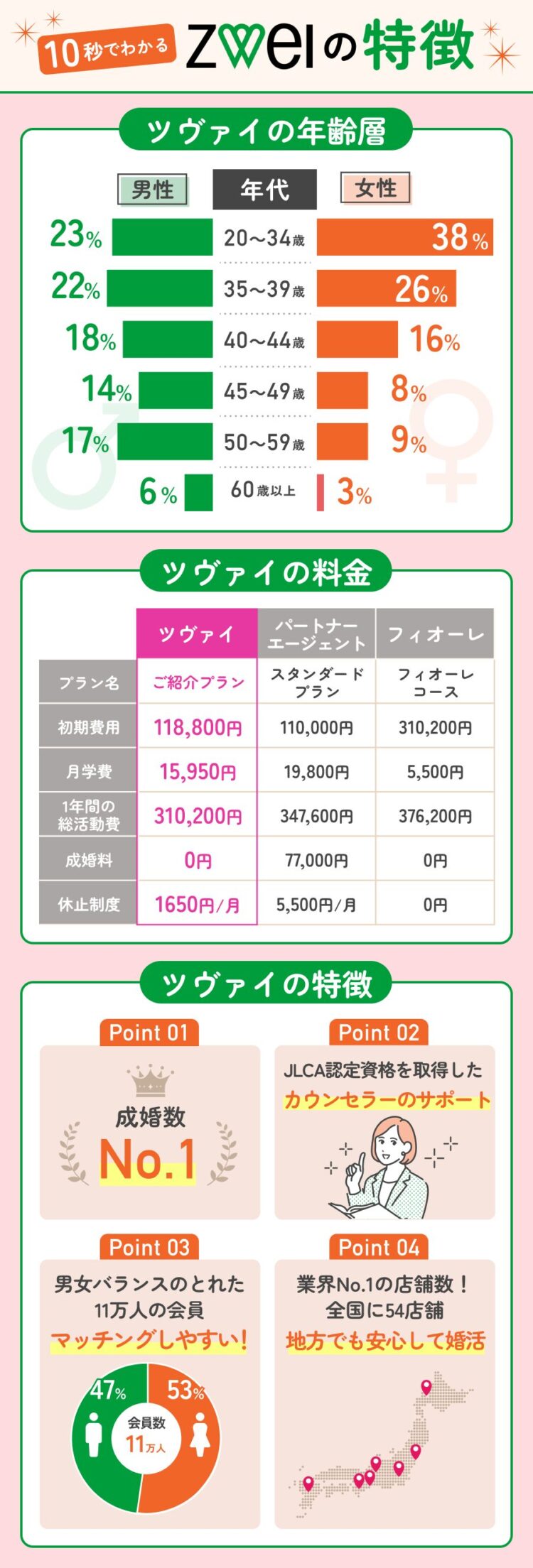コスパの良さで選ぶなら、ツヴァイは間違いのない選択肢といえるでしょう。
